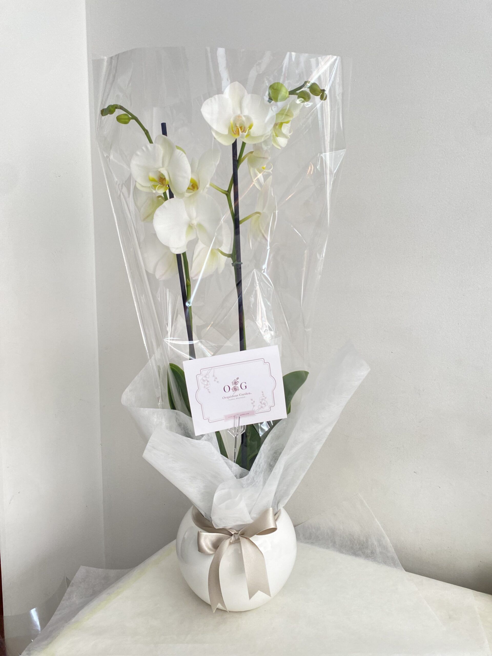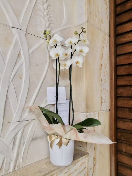 Nuestras Orquídeas van empacadas para la ocasión con moño, tarjeta personalizada y recomendaciones de cuidados sin costo adicional