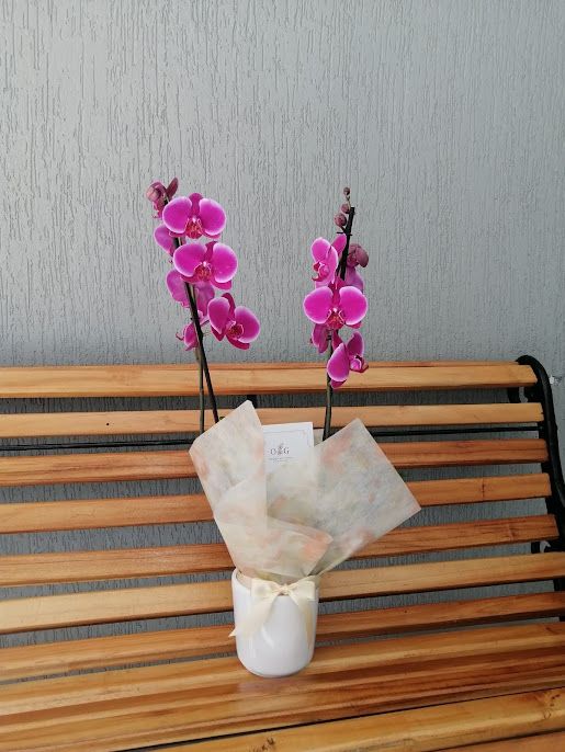 Nuestras Orquídeas van empacadas para la ocasión con moño, tarjeta personalizada y recomendaciones de cuidados sin costo adicional