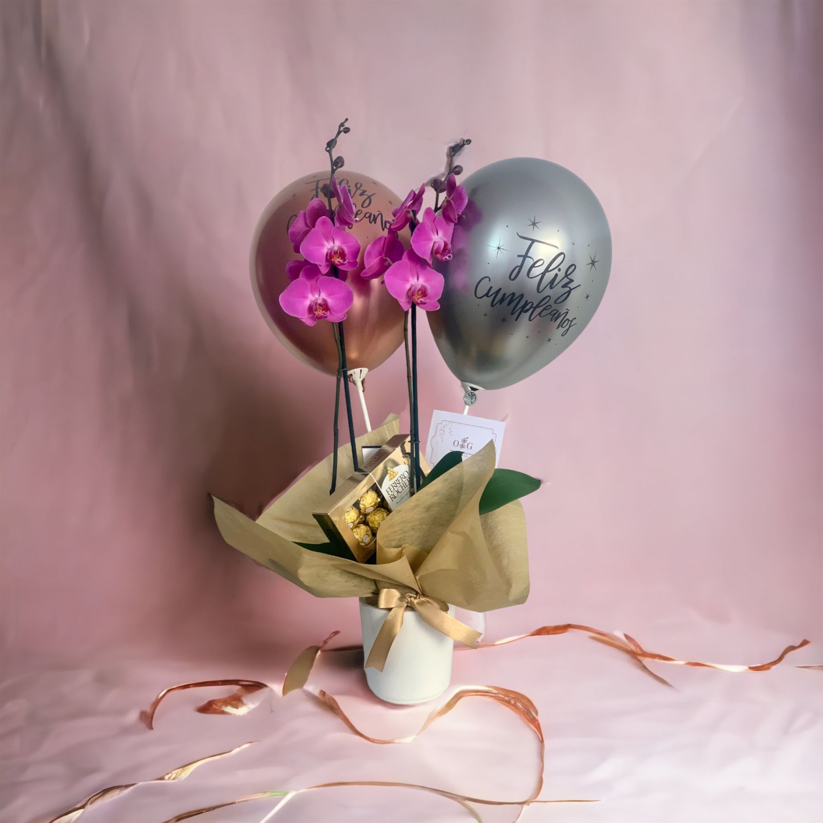 Orquideas +base Ceramica +2 Globos +Ferreros x8