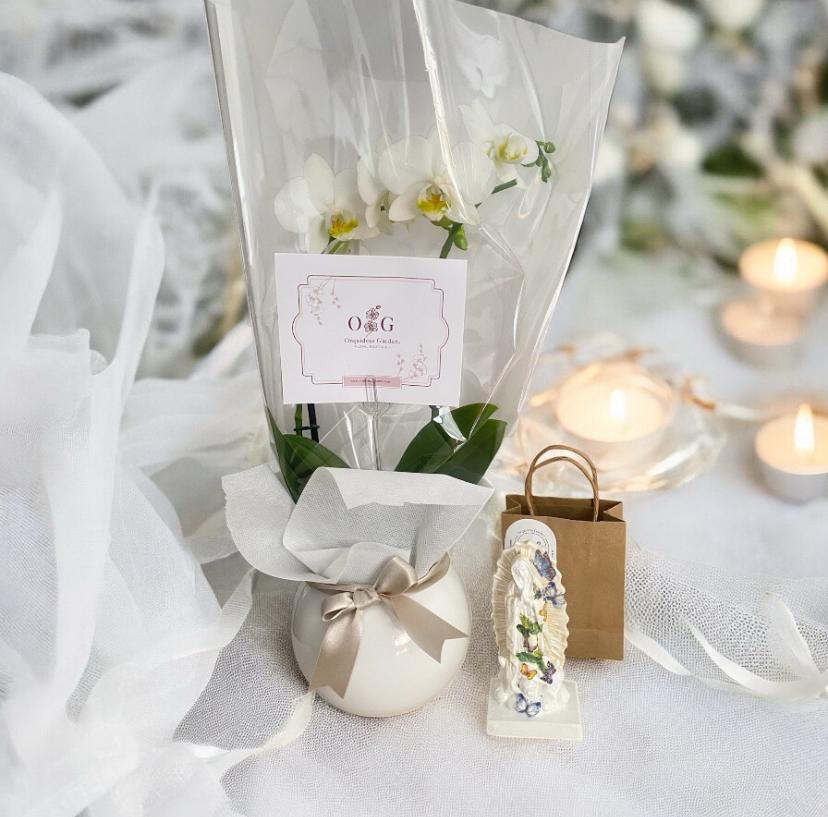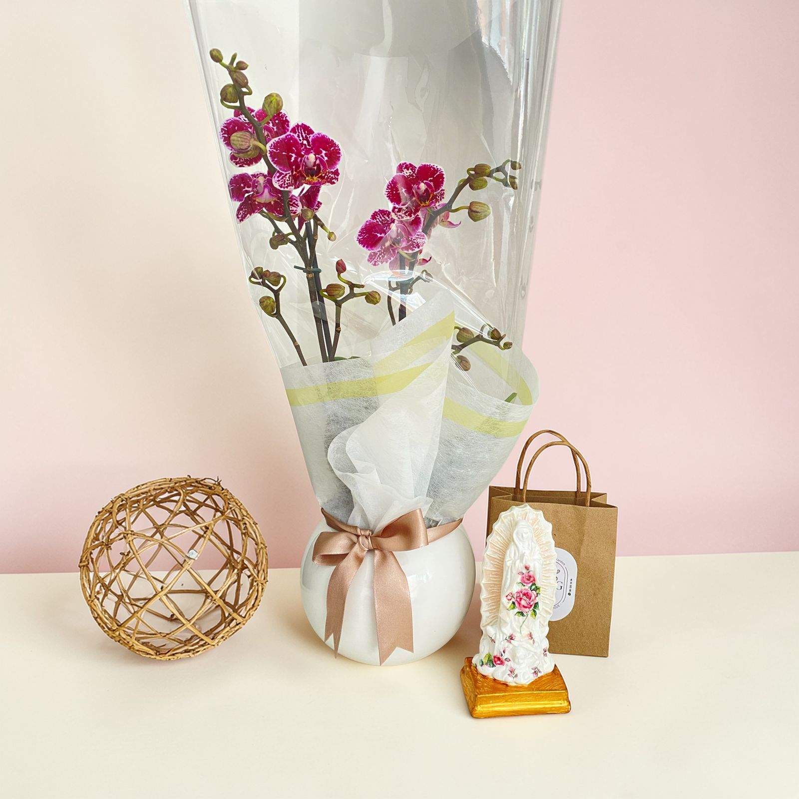 Orquideas Medianas con Base Ceramica + Virgen 15 cms